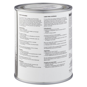 Voor een optimaal resultaat van deze GAMMA Color Intens binnenlak behandel je de ondergrond eerst met de GAMMA Color Intens grondverf. Het blik heeft een inhoud van 750 milliliter, dit is voldoende voor een oppervlakte van ongeveer 7,5 m². Drie uur na het aanbrengen van de verf is deze reeds stofdroog, na 24 uur kan je de volgende laag aanbrengen. Verwerk de verf bij temperaturen tussen de 8 en 25°C.
