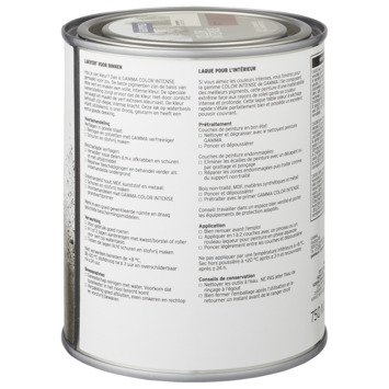 Voor een optimaal resultaat van deze GAMMA Color Intens binnenlak behandel je de ondergrond eerst met de GAMMA Color Intens grondverf. Het blik heeft een inhoud van 750 milliliter, dit is voldoende voor een oppervlakte van ongeveer 7,5 m². Drie uur na het aanbrengen van de verf is deze reeds stofdroog, na 24 uur kan je de volgende laag aanbrengen. Verwerk de verf bij temperaturen tussen de 8 en 25°C.