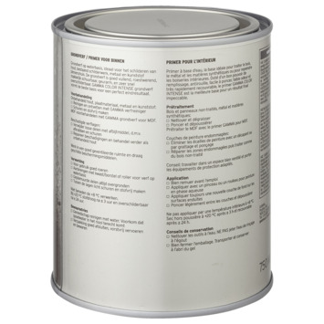 De GAMMA Color Intense grondverf 750 ml grijs is een uitstekende basis voor goed schilderwerk binnenshuis. Je beschermt het houtwerk, plaatmateriaal, bestaand schilderwerk en voorbehandeld metaal binnenshuis optimaal door de ondergrond voor te behandelen met deze extra dekkende grondverf.