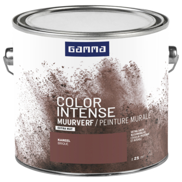 GAMMA Color Intense is een kleurconcept voor binnenschilderwerk van hoge kwaliteit en diepe kleurkracht. De GAMMA Color Intense muurverf extra mat 2,5 L kareel is een geur arme watergedragen muurverf. Het blik heeft een inhoud van 2,5 liter, dit is voldoende voor een oppervlakte van ongeveer 25 m². Twee uur na het aanbrengen van de verf is deze reeds stofdroog, na 6 uur kan je de volgende laag aanbrengen. De beste temperatuur om met deze verf te werken is tussen de 8 en 25°C.