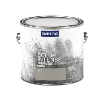 GAMMA Color Intense is een kleurconcept voor binnenschilderwerk van hoge kwaliteit en diepe kleurkracht. De GAMMA Color Intense muurverf extra mat 2,5 L malt is een geur arme watergedragen muurverf. Het blik heeft een inhoud van 2,5 liter, dit is voldoende voor een oppervlakte van ongeveer 25 m². Twee uur na het aanbrengen van de verf is deze reeds stofdroog, na 6 uur kan je de volgende laag aanbrengen. De beste temperatuur om met deze verf te werken is tussen de 8 en 25°C.