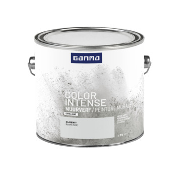 GAMMA Color Intense is een kleurconcept voor binnenschilderwerk van hoge kwaliteit en diepe kleurkracht. De GAMMA Color Intense muurverf extra mat 2,5 L zijdewit is een geur arme watergedragen muurverf. Het blik heeft een inhoud van 2,5 liter, dit is voldoende voor een oppervlakte van ongeveer 25 m². Twee uur na het aanbrengen van de verf is deze reeds stofdroog, na 6 uur kan je de volgende laag aanbrengen. De beste temperatuur om met deze verf te werken is tussen de 8 en 25°C.