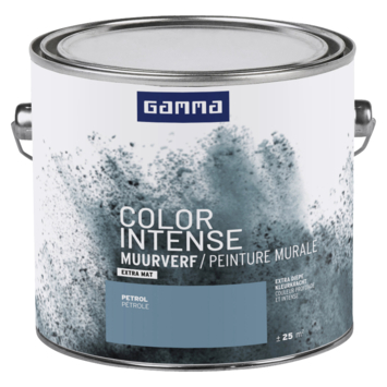 GAMMA Color Intense is een kleurconcept voor binnenschilderwerk van hoge kwaliteit en diepe kleurkracht. De GAMMA Color Intense muurverf extra mat 2,5 L petrol is een geur arme watergedragen muurverf. Het blik heeft een inhoud van 2,5 liter, dit is voldoende voor een oppervlakte van ongeveer 25 m². Twee uur na het aanbrengen van de verf is deze reeds stofdroog, na 6 uur kan je de volgende laag aanbrengen. De beste temperatuur om met deze verf te werken is tussen de 8 en 25°C. In deze Color Intense muurverf maken we gebruik van de beste pigmenten, zo bereik je met deze verf een karakteristiek diepe kleurkracht. Door gebruik van extra bindmiddel heeft de verf een extreem hoge dekkracht en een zeer goede hechting. Hierdoor is de muur ook goed te reinigen met een vochtige doek, daardoor is deze verf uitstekend geschikt om te gebruiken in diverse ruimtes die intensief gebruikt worden, zoals bijvoorbeeld de keuken, gang of woonkamer. Er zijn 20 trendy kleuren kant en klaar beschikbaar in de GAMMA vestiging bij jou in de buurt. En de verfadviseurs kunnen voor jou iedere andere kleur mengen, in extra mat of zijdemat. Met GAMMA Color Intense creëer je eenvoudig de woonsfeer die bij jou past, romantisch, industrieel, sereen of juist heel kleurrijk, alles is mogelijk. Kortom deze muurverf is een prima keuze om het jouw interieur een nieuwe uitstraling te geven.