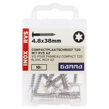 GAMMA compactplaatschroef RVS 4,8x38 mm wit 10 stuks