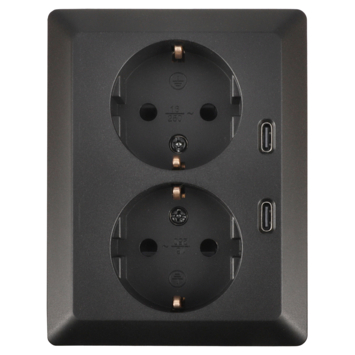 Dit dubbele stopcontact beschikt over 2 USB-C poorten. Dit zorgt ervoor dat er altijd ruimte vrij is om kleine apparaten op te laden.