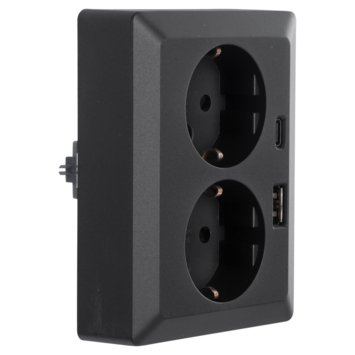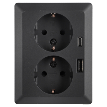 Mooi zwart dubbel stopcontact. En plus de usb en c poort aansluiting.