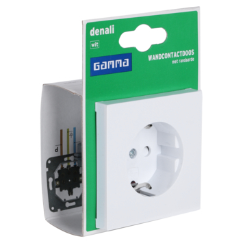 De GAMMA Denali Enkel Geaard Stopcontact Wit is eenvoudig te monteren dankzij de gebruiksvriendelijke installatiehandleiding en het handige aansluitschema. Je kunt een apparaat, lamp of verlengsnoer op de wandcontactdoos aansluiten. De ?aarde? zorgt ervoor dat, in geval van kapotte- of losgeschoten bedrading in een apparaat (bv. wasmachine of computer), de metalen delen niet onder stroom komen te staan, de stroom wordt dan via een extra aardedraad in de aarde geleid.