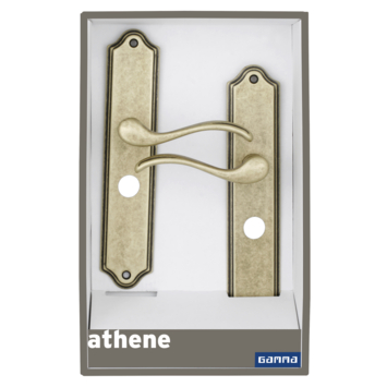 Gamma deurkruk set Athene ovaal schild vrij-bezet sluiting 63/8 mm messing antiek