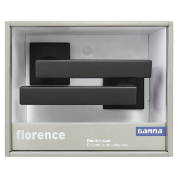 Gamma deurkruk set Florence vierkant rozet zwart RVS