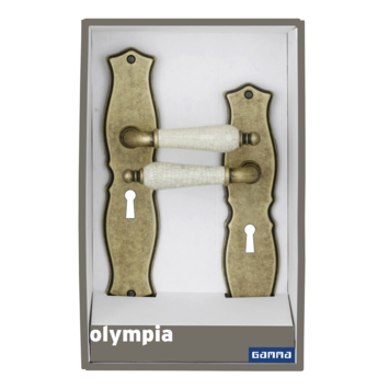 Gamma deurkruk set Olympia ovaal schild sleutelgat 56 mm messing antiek