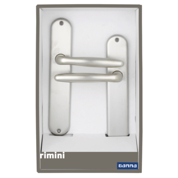 Gamma deurkruk set Rimini ovaal blind schild RVS look messing