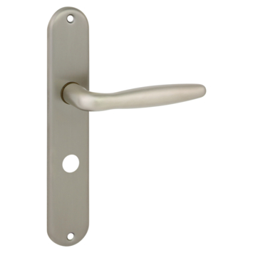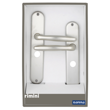 Gamma deurkruk set Rimini ovaal schild vrij-bezet sluiting 63/8 mm RVS look messing