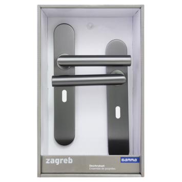 Gamma deurkruk set Zagreb ovaal schild sleutelgat 56 mm gun metal RVS