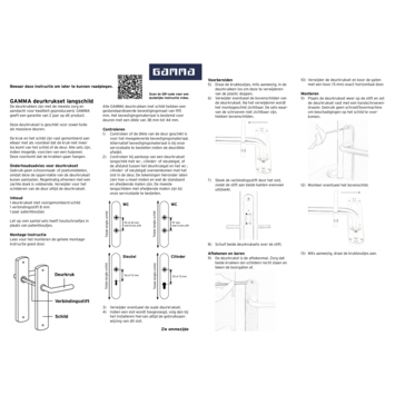 Deze GAMMA deurkrukset voor binnendeuren maakt onderdeel uit van de serie Zagreb. GAMMA verkoopt ook bijpassend deurbeslag met wc sluiting of sleutelgat binnen deze serie. Ideaal voor het afsluiten van uw wc of badkamer en bijvoorbeeld uw trap- of meterkast. De deurkrukset is gemaakt van RVS en vervolgens zwart gepoedercoat. Deze GAMMA deurkrukset is vast gemonteerd op het schild, de kruk kan dus niet zomaar van de deur getrokken worden. De montage is voor bijna alle modellen gestandaardiseerd. Veelal kunt u uw oude deurkrukken op langschild zonder boren vervangen door GAMMA deurkrukken op langschild.