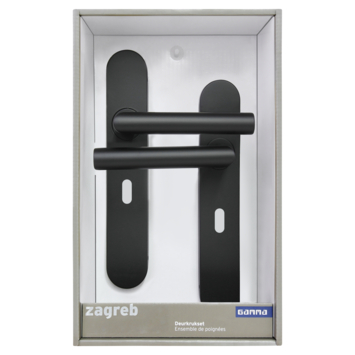 Gamma deurkruk set Zagreb ovaal schild sleutelgat 56 mm zwart RVS