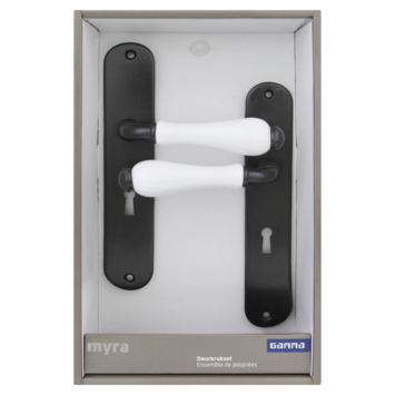 Deze GAMMA deurkrukset voor binnendeuren maakt onderdeel uit van de serie Myra. Deze deurkrukset is ideaal voor het afsluiten van uw trap- of meterkast. En is gemaakt van De deurkrukset is gemaakt van messing en vervolgens verbronsd en gelakt. Het handvat is van porselein. Deze GAMMA deurkrukset is vast gemonteerd op het schild, de kruk kan dus niet zomaar van de deur getrokken worden. De montage is voor bijna alle modellen gestandaardiseerd. Veelal kunt u uw oude deurkrukken op langschild zonder boren vervangen door GAMMA deurkrukken op langschild.