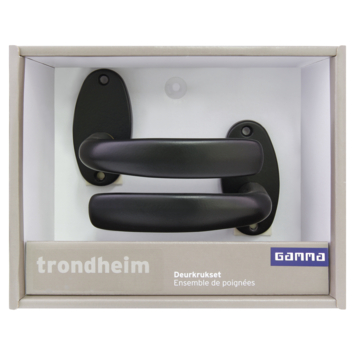 Deze GAMMA deurkrukset voor binnendeuren maakt onderdeel uit van de serie Trondheim. GAMMA verkoopt ook bijpassende sleutelplaatjes of wc garnituur. Ideaal voor het afsluiten van uw wc of badkamer en bijvoorbeeld uw trap- of meterkast. De deurkrukset is gemaakt van een hoogwaardige kwaliteit en uitgevoerd in zwart. Deze GAMMA deurkrukset is vast gemonteerd op het rozet, de kruk kan dus niet zomaar van de deur getrokken worden. De montage is voor bijna alle modellen gestandaardiseerd. Veelal kunt u uw oude deurkrukken op rozet zonder boren vervangen door GAMMA deurkrukken op rozet.