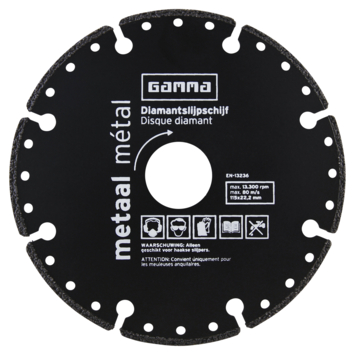 De Gamma diamantslijpschijf met diameter 115mm is uitermate geschikt voor het slijpen van metaal. De diamantslijpschijf is geschikt voor een haakse slijper.