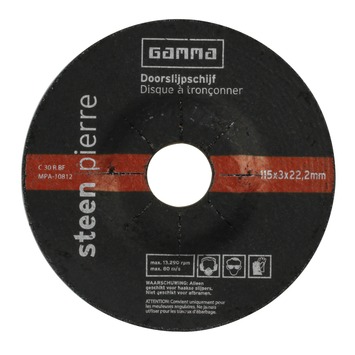 De Gamma doorslijpschijf 115x3x22,2mm is uitermate geschikt voor het slijpen van steen. De doorslijpschijf is geschikt voor een haakse slijper.