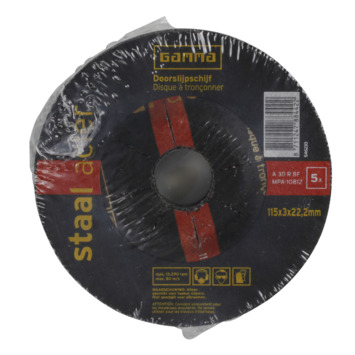 De Gamma doorslijpschijf 115x3x22,2mm is uitermate geschikt voor het slijpen van staal. De doorslijpschijf is geschikt voor een haakse slijper. De verpakking bevat 5 schijven.