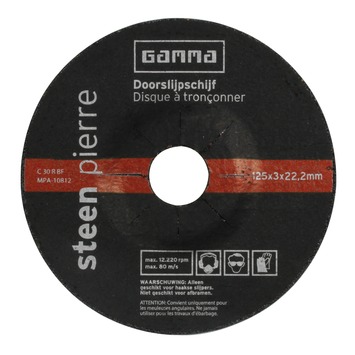 De Gamma doorslijpschijf 125x3x22,2mm is uitermate geschikt voor het slijpen van steen. De doorslijpschijf is geschikt voor een haakse slijper.