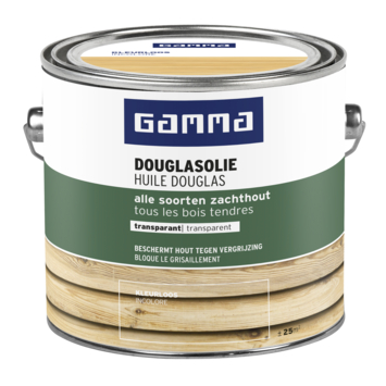 GAMMA Douglasolie transparant kleurloos is ideaal voor het behandelen en verzorgen van douglas, lariks en alle andere soorten zachthout. De olie dringt diep in het hout en geeft een, natuurlijke transparante uitstraling waarbij de houtnerf en houtstructuur zichtbaar blijven. GAMMA Douglasolie bevat UV-filters die het hout beschermen tegen vergrijzen. Geschikt voor zowel onbehandeld als reeds met olie behandeld hout.