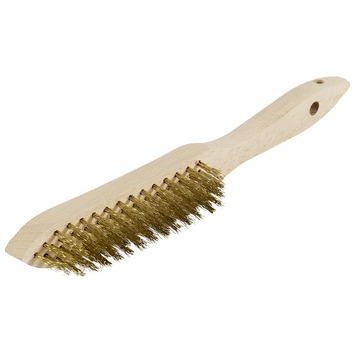 Deze GAMMA-draadborstel met 4 rijen draden van messing is ideaal voor het reinigen van kwetsbare materialen. De zachte messing draden beschadigen het te borstelen materiaal namelijk niet. Zo is de draadborstel bijvoorbeeld te gebruiken voor het uitborstelen van houtnerven. Het hout beschadigt niet. Bovendien geeft de draadborstel ook geen vlekken op het hout, zoals een staalborstel wel doet. Zoekt u een andere draadborstel dan deze draadborstel met 4 rijen messing? Bekijk GAMMA’s assortiment aan borstels.