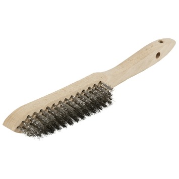 Deze GAMMA-draadborstel met 4 rijen draden van roestvaststaal (rvs) is ideaal voor het reinigen van metaal. Zo kan de rvs-draadborstel worden gebruikt tijdens laswerkzaamheden om fijne deeltjes weg te borstelen. Tevens is de draadborstel met 4 rijen rvs geschikt voor reinigingswerkzaamheden in een vochtige omgeving en daar waar geen roestende deeltjes gewenst zijn. De rvs-draden roesten namelijk niet. Zoekt u een andere draadborstel dan deze draadborstel met 4 rijen rvs? In GAMMA’s assortiment vindt u ook een draadborstel met 3 rijen rvs en andere borstels.