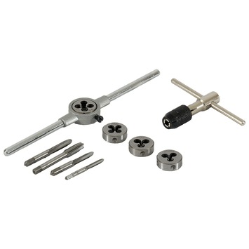 De draadsnij- en tapgereedschapsset M4-8 van GAMMA bestaat uit 10 delen en bevat onder meer een snijmoerhouder, taphouder, tappen, tapkrukken en snijplaten. Kortom, alle onderdelen die nodig zijn om nieuw schroefdraad aan te brengen of beschadigd schroefdraad te herstellen. De GAMMA draadsnij- en tapset is geschikt voor werkzaamheden met metrische schroefdraad M4 tot M8. Het is mogelijk om zowel inwendig als uitwendig schroefdraad in niet-gehard metaal aan te brengen of om beschadigd schroefdraad te herstellen. Naast deze kleine set bevat GAMMA’s assortiment ook een grotere draadsnij- en tapgereedschapsset: M3 tot M12.