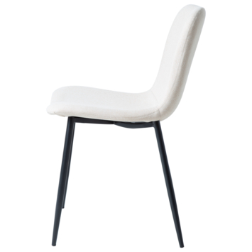 De eetkamerstoel Jeff is een moderne zand kleurige stoel gemaakt van textiel die goed past in je eetkamer. Het materiaal is zeer zacht en stevig. De eetkamerstoel Jeff heeft 4 zwarte poten gemaakt van metaal waar die op steunt. De eetkamerstoel heeft een roest/ zandachtige kleur, het is een simpele eetkamerstoel, maar toch elegant. De hoogte van de eetkamerstoel is 86 cm, de diepte is 57cm en de breedte is 46cm.