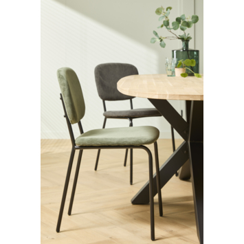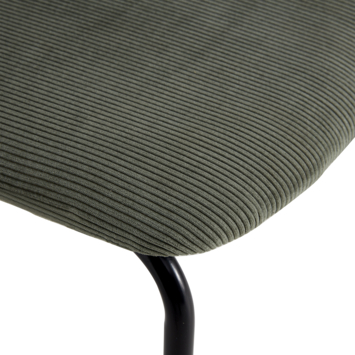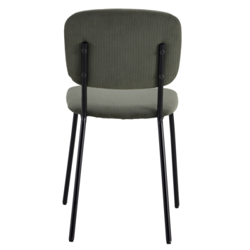 Eetkamerstoel Job rib groen is een groenkleurige eetkamerstoel gemaakt van ribstof. De eetkamerstoel Job heeft 4 zwarte metalen poten waar die op steunt. De eetkamerstoel is simpel, maar oogt mooi in de eetkamer en is ook zacht van stof. De eetkamerstoel is perfect voor elke eetkamer. De hoogte van de eetkamerstoel is 82 cm, 51 cm diep en 45 cm breed. De zithoogte van de eetkamerstoel Job is 49 cm, de zitdiepte is 42,5 cm en de zitbreedte is 43,5 cm.