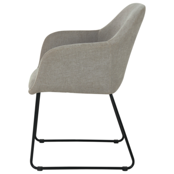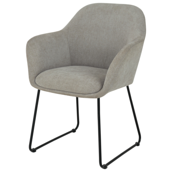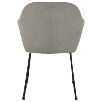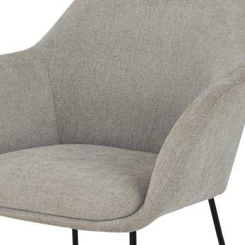 Ontdek de stijlvolle Eetkamerstoel Lotte: een prachtig gestoffeerde stoel met een naturel bekleding en elegante zwarte metalen poten. De combinatie van de zachte kleur en het moderne design maakt Lotte een perfecte aanvulling op elke eetkamer.