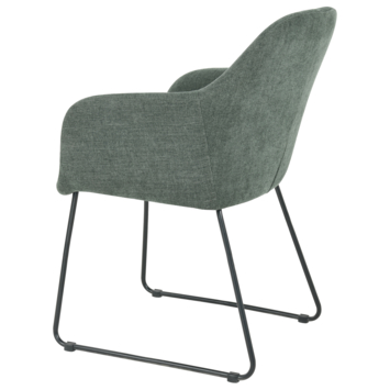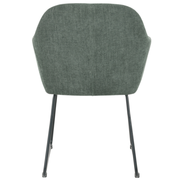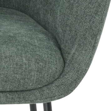 Ontdek de stijlvolle Eetkamerstoel Lotte: een prachtig gestoffeerde stoel met een warm groene bekleding en elegante zwarte metalen poten. De combinatie van de zachte kleur en het moderne design maakt Lotte een perfecte aanvulling op elke eetkamer.