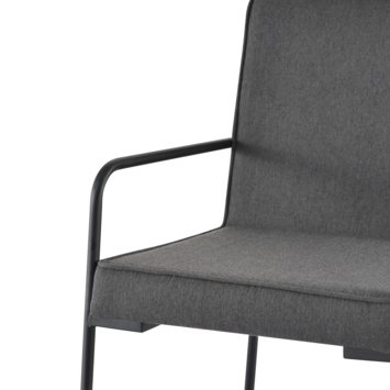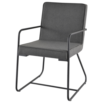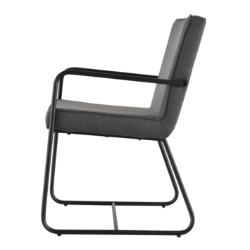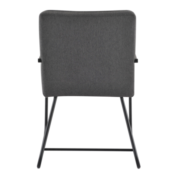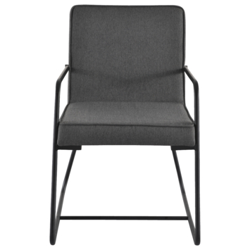 Eetkamerstoel Peter gestoffeerd grijs is een grijskleurige eetkamerstoel gemaakt van textiel. De eetkamerstoel heeft 2 zwarte metalen poten waar die op steunt en ook 2 zwarte metalen armleuningen waar de armen op kunnen steunen. Dit is ideaal om tijdens het eten even je armen op te leggen als steun. De hoogte van de eetkamerstoel Peter is 85 cm, de diepte is 56 cm en de breedte is 64 cm. De hoogte van de armleuning vanaf de vloer is 64 cm en de breedte van de armleuning is 2 cm. De zithoogte van de eetkamerstoel Peter is 49 cm, de diepte is 45 en de breedte is 53 cm.