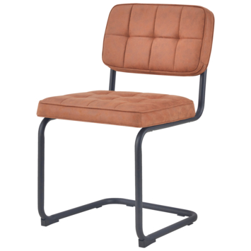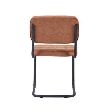 Eetkamerstoel Tom is een mooie eigentijdse stoel met een retro jasje. De stoel is uitgevoerd met PU-leer en een stoere metalen buisframe. De stoel heeft een gecapitonneerde zitting en rugleuning.