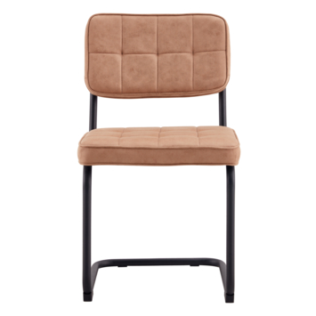 Eetkamerstoel Tom is een mooie eigentijdse stoel met een retro jasje. De stoel is uitgevoerd met PU-leer en een stoere metalen buisframe. De stoel heeft een gecapitonneerde zitting en rugleuning.