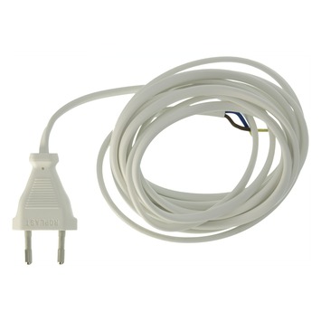 Het GAMMA eurosnoer met stekker wit 3meter is een 2-aderig snoer (2x0,75mm). Het witte snoer heeft een maximale aansluitwaarde van 1.380Watt. U kunt dit snoer monteren aan een apparaat waarvan het snoer kapot is.
