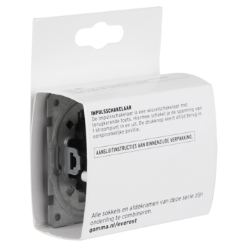 Met de GAMMA Everest Drukvlakschakelaar Antraciet kun je spanning in- en uitschakelen. Na het schakelen komt de toets (of schakelaar) weer in de oorspronkelijke positie te staan. Montage van deze antracietkleurige schakelaar is eenvoudig dankzij de gebruiksvriendelijke installatiehandleiding en het bijgevoegde aansluitschema.