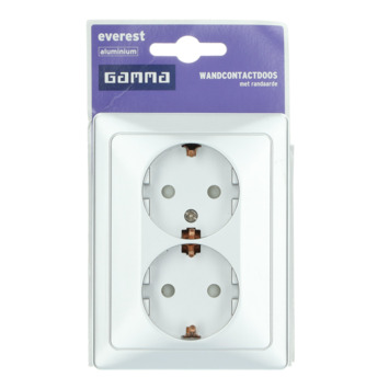 De GAMMA Everest Dubbel Geaard Stopcontact Aluminium is eenvoudig te monteren dankzij de gebruiksvriendelijke installatiehandleiding en het handige aansluitschema. Je kunt apparaten, lampen en verlengsnoeren op de wandcontactdoos aansluiten. De ?aarde? zorgt ervoor dat, in geval van kapotte- of losgeschoten bedrading in een apparaat (bv. wasmachine of computer), de metalen delen niet onder stroom komen te staan, de stroom wordt dan via een extra aardedraad in de aarde geleid. De Everest-serie heeft een strakke en moderne vormgeving en is verkrijgbaar in diverse kleuren.