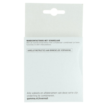 Met de GAMMA Everest Stopcontact met Schakelaar Wit combineer je twee functies in één product. Montage is eenvoudig dankzij de gebruiksvriendelijke installatiehandleiding en het bijgevoegde aansluitschema. Je kunt de contactdoos zowel horizontaal als verticaal monteren.