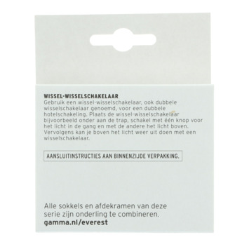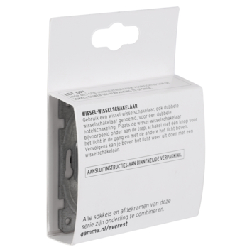 De GAMMA Everest Wissel-wisselschakelaar Antraciet kun je gebruiken om twee lichtpunten afzonderlijk van elkaar te bedienen vanaf meerdere plaatsen. Je kunt een wissel-wisselschakelaar ook gebruiken voor het maken van een hotelschakeling. Plaats de schakelaar bijvoorbeeld onderaan de trap. Met de ene knop bedient je de lamp in de hal en met de andere de lamp op de overloop. Een wissel-wisselschakelaar wordt ook wel Dubbele wisselschakelaar genoemd. Montage van deze antracietkleurige Everest wissel-wisselschakelaar is eenvoudig dankzij de gebruiksvriendelijke installatiehandleiding en het bijgevoegde aansluitschema.