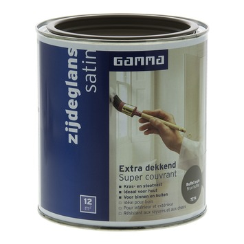 GAMMA Extra Dekkend lak buffel bruin zijdeglans 750 ml is een extra dekkende, stoot- en krasvaste lak op terpentinebasis. Deze zijdeglans verf is geschikt voor decoratieve toepassingen binnenshuis op zowel hout, metaal als kunststof. Het product is ook weersbestendig en te gebruiken voor toepassingen buitenshuis. Eén blik van 750 ml volstaat voor het schilderen van een oppervlakte van 12 m2 er van uitgaande dat in de vereiste dunne lagen wordt geschilderd. Naast de standaard beschikbare kleuren is deze lak in meer dan 30.000 verschillende kleuren te verkrijgen bij onze verfmengbalie in de GAMMA bouwmarkt.