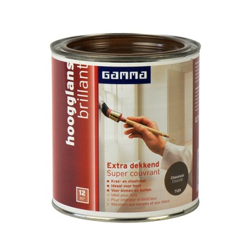 GAMMA Extra Dekkend lak chocolade hoogglans 750 ml is een extra dekkende, stoot- en krasvaste lak op terpentinebasis. Deze hoogglans verf is geschikt voor decoratieve toepassingen binnenshuis op zowel hout, metaal als kunststof. Het product is ook weersbestendig en te gebruiken voor toepassingen buitenshuis. Eén blik van 750 ml volstaat voor het schilderen van een oppervlakte van 12 m2 er van uitgaande dat in de vereiste dunne lagen wordt geschilderd. Naast de standaard beschikbare kleuren is deze lak in meer dan 30.000 verschillende kleuren te verkrijgen bij onze verfmengbalie in de GAMMA bouwmarkt.