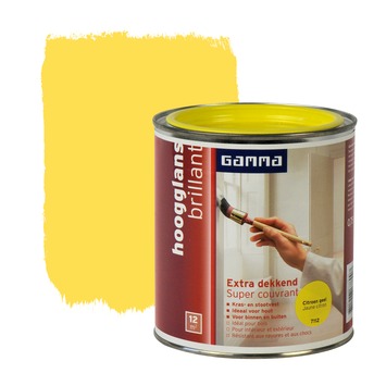 GAMMA Extra Dekkend lak citroen geel hoogglans 750 ml is een extra dekkende, stoot- en krasvaste lak op terpentinebasis. Deze hoogglans verf is geschikt voor decoratieve toepassingen binnenshuis op zowel hout, metaal als kunststof. Het product is ook weersbestendig en te gebruiken voor toepassingen buitenshuis. Eén blik van 750 ml volstaat voor het schilderen van een oppervlakte van 12 m2 er van uitgaande dat in de vereiste dunne lagen wordt geschilderd. Naast de standaard beschikbare kleuren is deze lak in meer dan 30.000 verschillende kleuren te verkrijgen bij onze verfmengbalie in de GAMMA bouwmarkt.