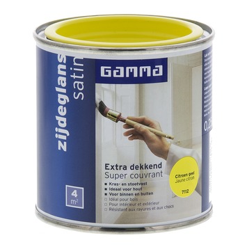 GAMMA Extra Dekkend lak citroen geel zijdeglans 250 ml is een extra dekkende, stoot- en krasvaste lak op terpentinebasis. Deze zijdeglans verf is geschikt voor decoratieve toepassingen binnenshuis op zowel hout, metaal als kunststof. Het product is ook weersbestendig en te gebruiken voor toepassingen buitenshuis. Eén blik van 250 ml volstaat voor het schilderen van een oppervlakte van 4 m2 er van uitgaande dat in de vereiste dunne lagen wordt geschilderd. Naast de standaard beschikbare kleuren is deze lak in meer dan 30.000 verschillende kleuren te verkrijgen bij onze verfmengbalie in de GAMMA bouwmarkt.