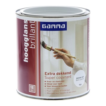 GAMMA Extra Dekkend lak gletsjer wit hoogglans 750 ml is een extra dekkende, stoot- en krasvaste lak op terpentinebasis. Deze hoogglans verf is geschikt voor decoratieve toepassingen binnenshuis op zowel hout, metaal als kunststof. Het product is ook weersbestendig en te gebruiken voor toepassingen buitenshuis. Lichte kleuren op terpentinebasis kunnen binnenshuis naar verloop van tijd geel worden op plaatsen die niet veel in contact komen met daglicht. Op deze plaatsen kunt u daarom het beste een lak op waterbasis gebruiken. Eén blik van 750 ml volstaat voor het schilderen van een oppervlakte van 12 m2 er van uitgaande dat in de vereiste dunne lagen wordt geschilderd. Naast de standaard beschikbare kleuren is deze lak in meer dan 30.000 verschillende kleuren te verkrijgen bij onze verfmengbalie in de GAMMA bouwmarkt.