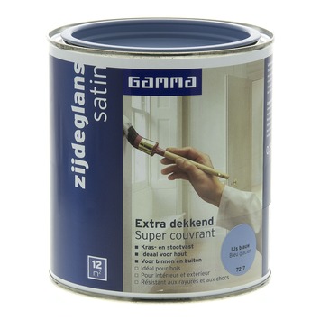 GAMMA Extra Dekkend lak ijs blauw zijdeglans 750 ml is een extra dekkende, stoot- en krasvaste lak op terpentinebasis. Deze zijdeglans verf is geschikt voor decoratieve toepassingen binnenshuis op zowel hout, metaal als kunststof. Het product is ook weersbestendig en te gebruiken voor toepassingen buitenshuis. Eén blik van 750 ml volstaat voor het schilderen van een oppervlakte van 12 m2 er van uitgaande dat in de vereiste dunne lagen wordt geschilderd. Naast de standaard beschikbare kleuren is deze lak in meer dan 30.000 verschillende kleuren te verkrijgen bij onze verfmengbalie in de GAMMA bouwmarkt.