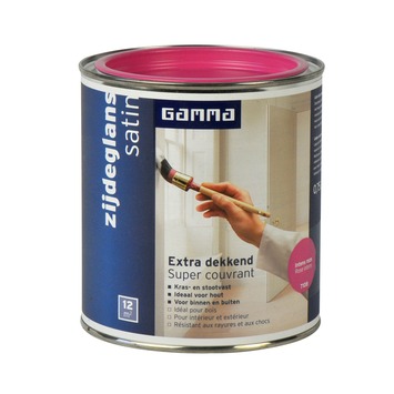 GAMMA Extra Dekkend lak intens roze zijdeglans 750 ml is een extra dekkende, stoot- en krasvaste lak op terpentinebasis. Deze zijdeglans verf is geschikt voor decoratieve toepassingen binnenshuis op zowel hout, metaal als kunststof. Het product is ook weersbestendig en te gebruiken voor toepassingen buitenshuis. Eén blik van 750 ml volstaat voor het schilderen van een oppervlakte van 12 m2 er van uitgaande dat in de vereiste dunne lagen wordt geschilderd. Naast de standaard beschikbare kleuren is deze lak in meer dan 30.000 verschillende kleuren te verkrijgen bij onze verfmengbalie in de GAMMA bouwmarkt.