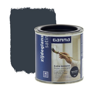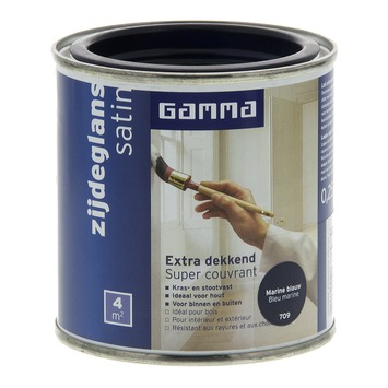 GAMMA Extra Dekkend lak marine blauw zijdeglans 250 ml is een extra dekkende, stoot- en krasvaste lak op terpentinebasis. Deze zijdeglans verf is geschikt voor decoratieve toepassingen binnenshuis op zowel hout, metaal als kunststof. Het product is ook weersbestendig en te gebruiken voor toepassingen buitenshuis. Eén blik van 250 ml volstaat voor het schilderen van een oppervlakte van 4 m2 er van uitgaande dat in de vereiste dunne lagen wordt geschilderd. Naast de standaard beschikbare kleuren is deze lak in meer dan 30.000 verschillende kleuren te verkrijgen bij onze verfmengbalie in de GAMMA bouwmarkt.