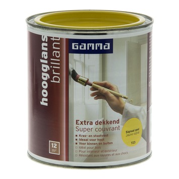 GAMMA Extra Dekkend lak signaal geel hoogglans 750 ml is een extra dekkende, stoot- en krasvaste lak op terpentinebasis. Deze hoogglans verf is geschikt voor decoratieve toepassingen binnenshuis op zowel hout, metaal als kunststof. Het product is ook weersbestendig en te gebruiken voor toepassingen buitenshuis. Eén blik van 750 ml volstaat voor het schilderen van een oppervlakte van 12 m2 er van uitgaande dat in de vereiste dunne lagen wordt geschilderd. Naast de standaard beschikbare kleuren is deze lak in meer dan 30.000 verschillende kleuren te verkrijgen bij onze verfmengbalie in de GAMMA bouwmarkt.